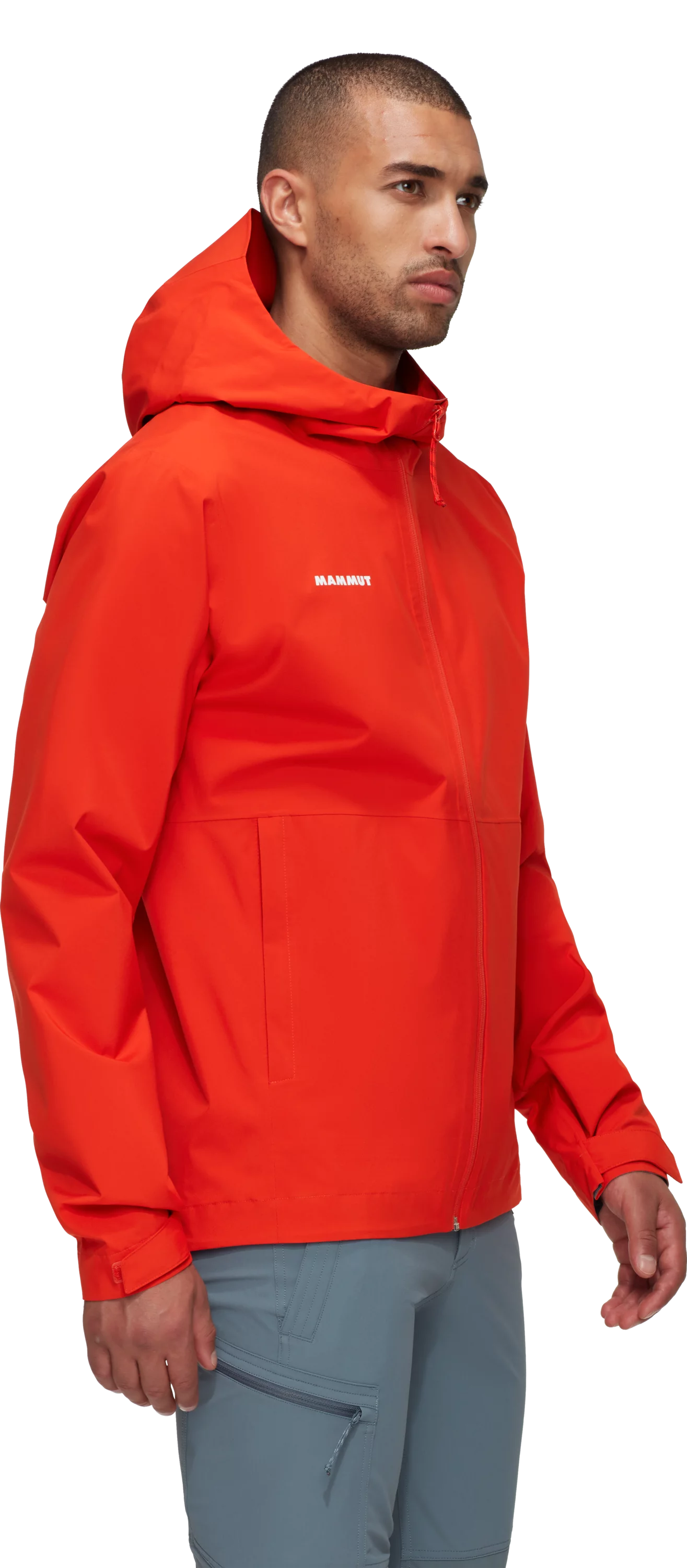 Якето е изработено с 2-слоен Mammut DRY Tour ламинат, който осигурява стабилна защита от атмосферни влияния. Материята е ветроустойчива, а водният стълб от 10 000 mm и дишаемостта от 10 000 g/m²/24h допринасят за добър баланс между защита и комфорт при носене. Допълнителната PFC-free DWR обработка помага външният слой да отблъсква влагата по-ефективно.