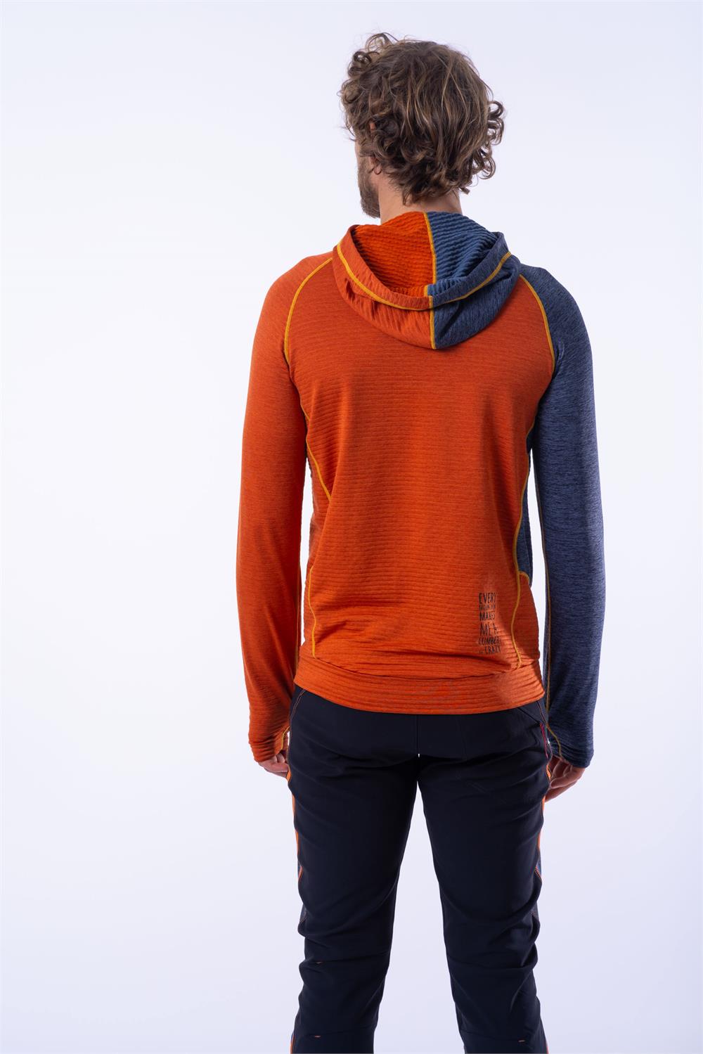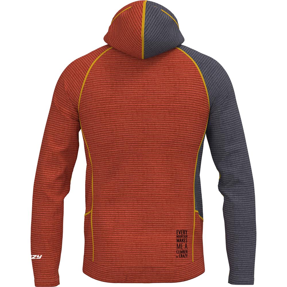 The CRAZY PULL DIRECTOR is a functional mid-layer hoodie pullover that blends modern style with excellent insulation and breathability — ideal for mountain trekking, everyday outdoor use, and light activities. It is made from a new wavy High Performance fabric, offering a great balance between thermal regulation and airflow, with a distinctive tactile and visual feel.