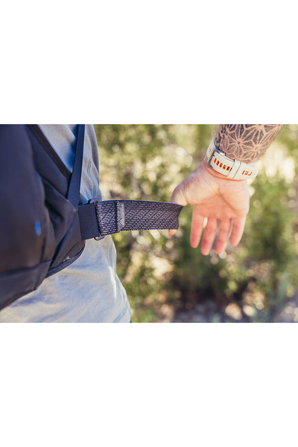 - Front durable stretch mesh pocket for quick on-trail storage
