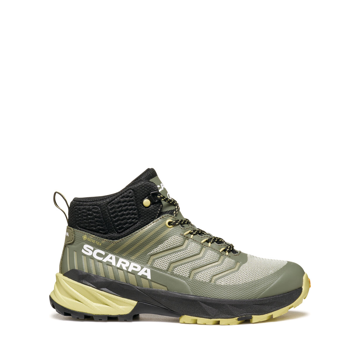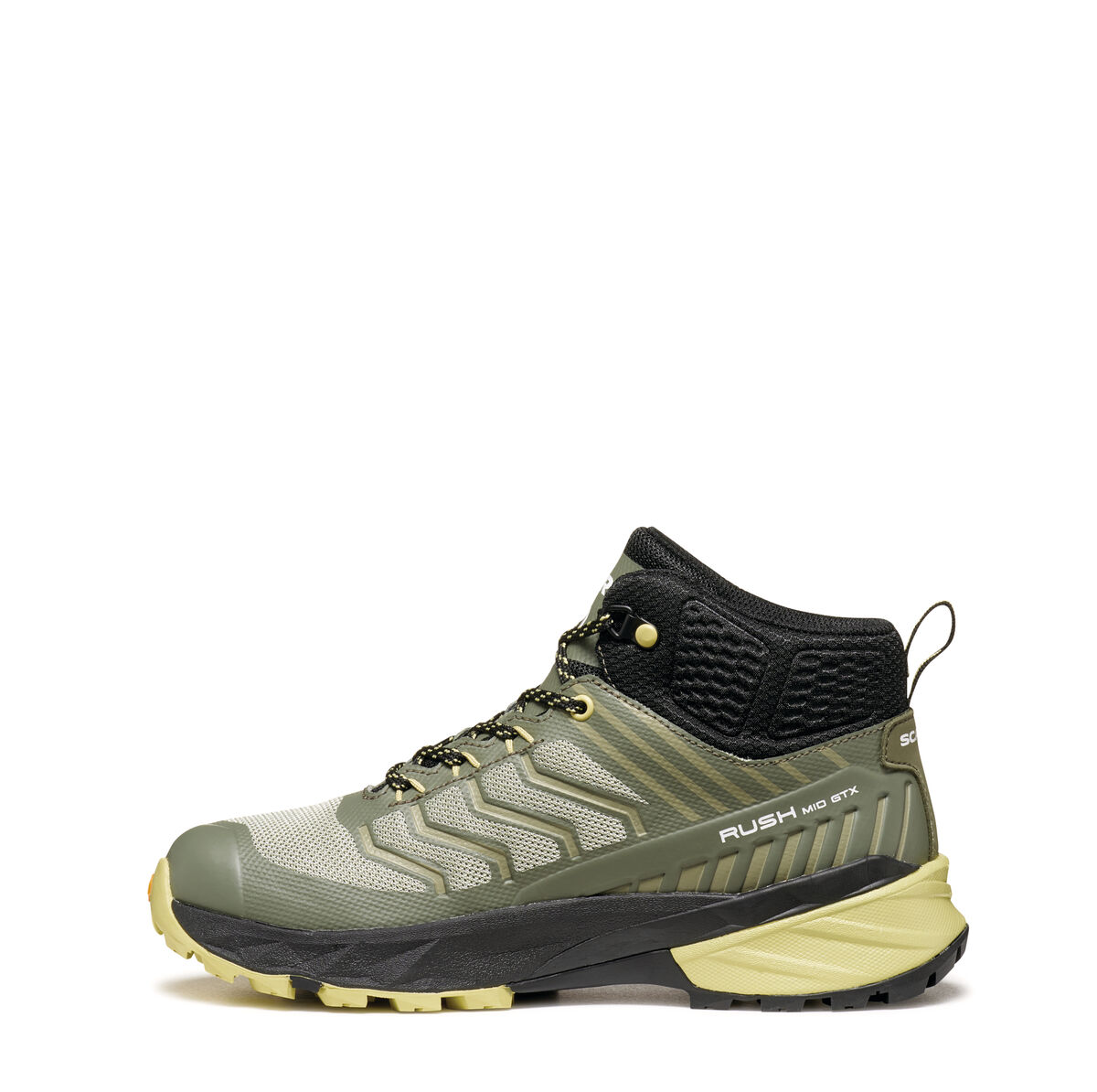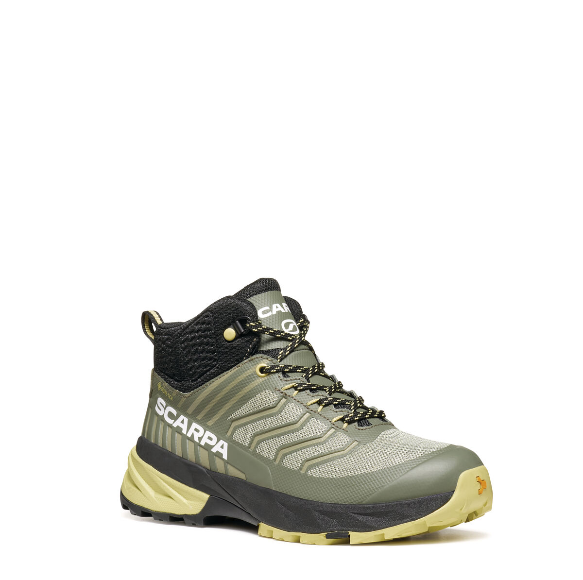 UPPER: Technical mesh with heat-sealed film external cage for more support, designed by SCARPA. Internal toe cap for more protection. Collar autofit 3D padding, wrapping the ankle for comfort and protection.