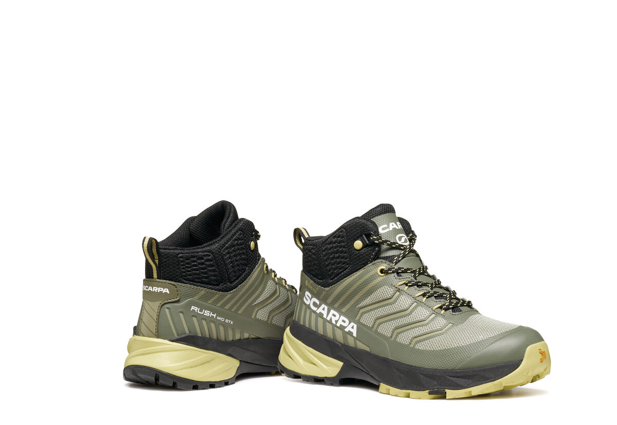 RUSH MID GTX-Y is a mid cut outdoor footwear for trekking. Very light, with a technical and